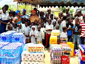The donated items included, Big sizes of cooking oil, Dozens of toiletries, Bottles of carbonated drinks, Canned drinks, Bags of rice, Washing and bath soaps, Cartons of milk, thousands of cedis in cash and more